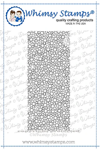 Hello friends! Just a quick post today using some new products from Whimsy Stamps! I stamped the new Dainty Daisies background stamp with Versamark on black paper and embossed it in white. I colored each of the flowers with the Karin Brushmarkers in metallics. The frame and sentiment are part of the Doodle Frames Clear Stamp set, embossed in white.